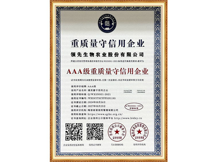 AAA級(jí)重質(zhì)量守信用企業(yè)