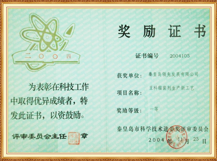 豆科瘤菌劑生產(chǎn)新工藝—秦皇島科學技術進步一等獎